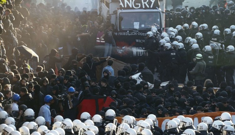 Ralf Martin Meyer, a hamburgi rendőrség vezetője az ARD országos köztelevíziónak elmondta, hogy megpróbálták leválasztani a fekete ruhás, maszkot viselő tüntetők csoportját - az úgynevezett fekete blokkot - a békés demonstrálók tömegétől, ami „kaotikus jeleneteket" eredményezett.