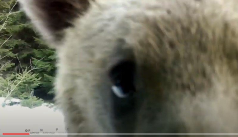 Ez a remek felvétel a Királykő-hegységben készült, ahol egy rosszcsont medvebocs az anyuci hathatós segítségével addig hadakozik egy fára rögzített térfigyelő kamerával, míg le nem veri a földre.