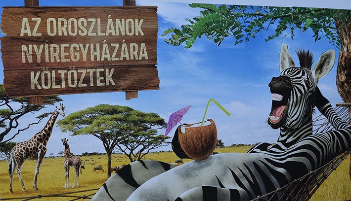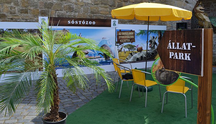 Amikor sikerül átsurranunk a Fogoly utcát lezáró színpad mellett, hirtelen mintha egy szafariparkba tévedtünk volna: mini pálmafák, festett és művadállatok, turisztikai kiállítóhelyek közepette várja a Nyíregyháza iránt érdeklődőket a magyarországi város háromnapos – jobb híján nevezzük így – imázsközpontja.