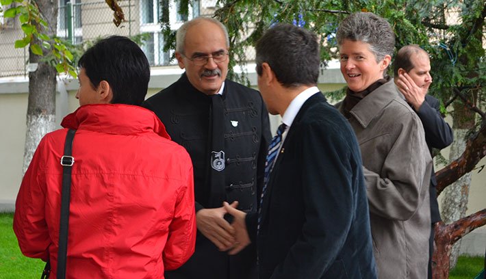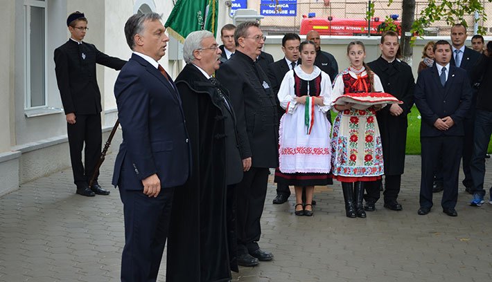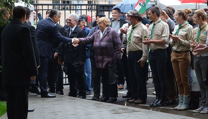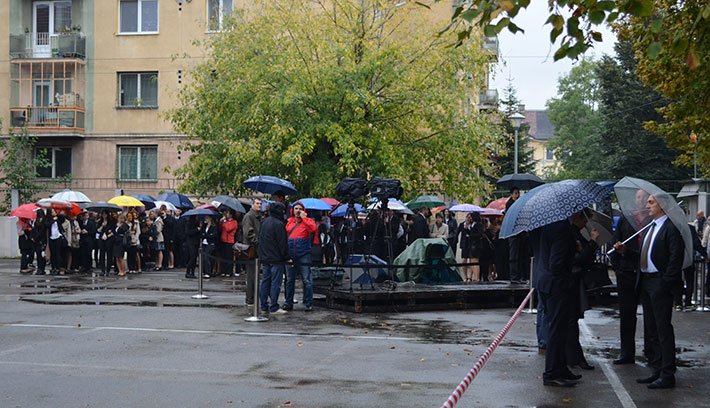 Péntek délelőtt fél tíz körül a szemerkélő esőben várjuk, hogy megérkezzen Orbán Viktor miniszterelnök, és felavassa a kolozsvári Református Kollégium új szakiskoláját. Egyelőre nincs tolongás, az udvaron diákok, szállingózó vendégek és újságírók ténferegnek.