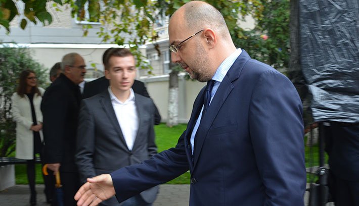 Udvarias és közvetlen politikusként Kelemen Hunor mindenkivel kezet fog, itt éppen a láthatatlan embert üdvözli.