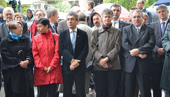 Alex Boguş (középen), tüntető: Elégedetlen és aggódó polgárok vagyunk, és azért tüntetünk, mert Orbán Viktor diktátor, akinek a jelenléte beárnyékolja az iskolaavatást, Erdélyben pedig a románok és a magyarok nem feszültséget, hanem együttműködést akarnak.