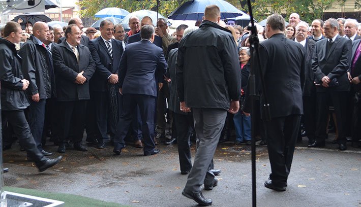 Elkéstem? Befut Biró Zsolt, a Magyar Polgári Párt elnöke is. Nem késett el, a ceremónia még nem kezdődött el, Orbán Viktor is késik, állítólag a Horea úton baleset történt, elütött valakit a troli, mondják.