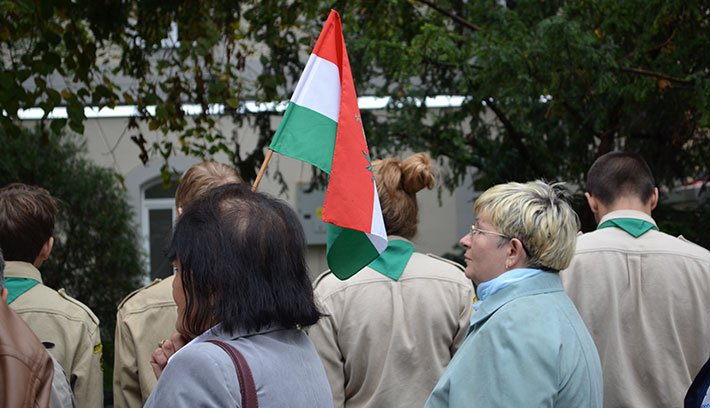 Az avatási ünnepségen ezt az egyetlen „lakossági” magyar zászlót láttuk.