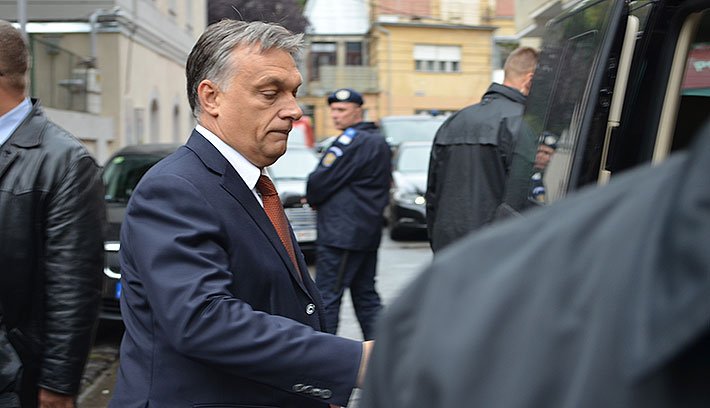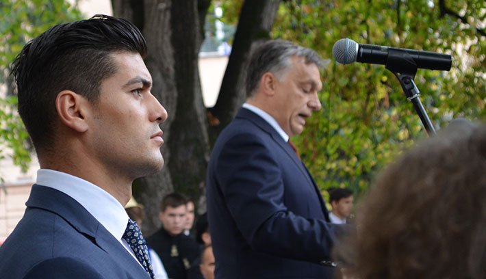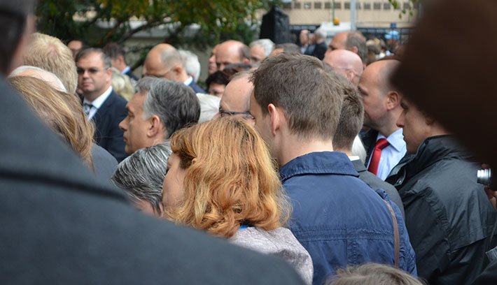 Szemkontaktust létesítettünk Orbán Viktorral, kár, hogy a melletünk álló szigorú csendőrnek éppen abban a pillanatban jutott eszébe bennünket kicsit odébb taszigálni.