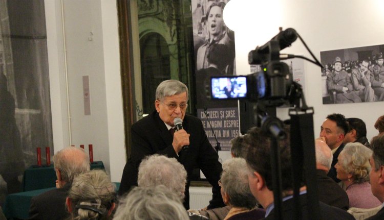 A kitüntetett 56-os elítéltek közül megszólaló Nagy Benedek - Horváth Anna kolozsvári alpolgármester édesapja - felidézte: a megtorlások által az erdélyi 56 is a román nemzetépítés lépcsőfoka lett. Ennek ürügyén olvasztották be a magyar tannyelvű Bolyai Tudományegyetemet a román Babes Tudományegyetembe. Nagy Benedek úgy vélte, hogy a magyarság számára nem az 56-os elesettek, elmenekültek jelentették a legnagyobb veszteséget, hanem az azt követő Kádár-rendszer, mely "a bitófák árnyékában" érte el, hogy az emberek jól érezzék magukat. A rendezvény keretében mutatták be Benkő Levente Volt egyszer egy 56 című dokumentumriport-könyvének a bővített kiadását.