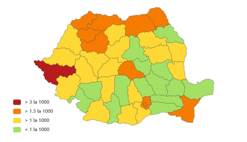 A megyék közül már csak Temes van a vörös zónában, ott az ezer lakosonként regisztrált fertőzöttek száma 3,24.