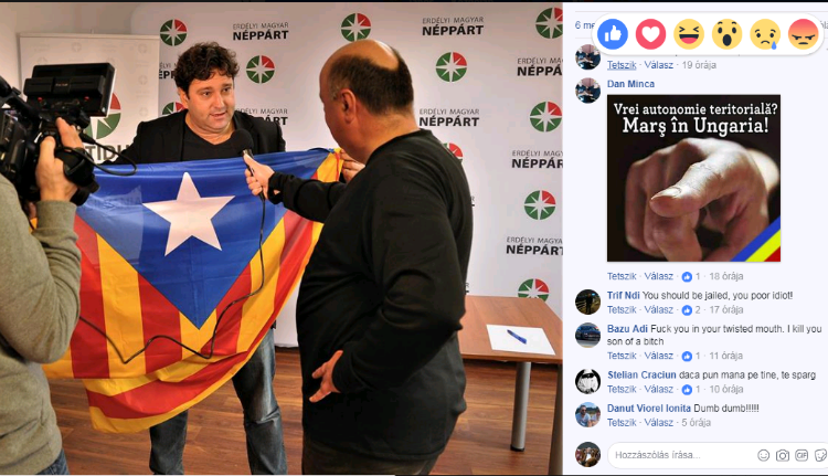 Az interneten (is) garázdálkodó román szélsőséges nacionalisták azonban, ha őt magát nem is, a Facebook-oldalát megtalálták, és gyalázkodó kommentekkel illették a katalán politikust (és ha úgy akadt, a társaságában lévő erdélyi magyarokat is). A civilizáltabbak a spanyol alkotmány hírhedt 155. cikkelyét idézgették, de vannak ott jóval szaftosabb „jókívánságok” is. Tessék: