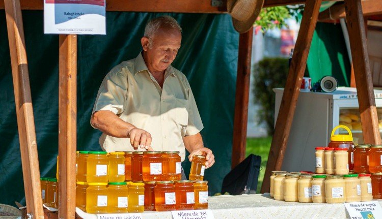 Előnyben a helyi termékek: ez az úriember hársmézet kínál a vásárban,