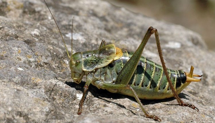 „Egyike a legnagyobb testű rovarfajainknak, az üde rétek, kaszálók lakója, és lomha mozgásával, erős rágóival valóban néha kifejezetten ijesztőnek tűnhet. Három színváltozatát is meg lehet figyelni: a szinte teljesen barnás-feketés mellett, zöldes-fekete, illetve teljesen zöld egyedek is vannak. Ez a faj a nem is olyan régmúltban dívó permetezéseknek köszönhetően mára már sokfelé megritkult Európában, s így több országban (Németország, Ausztria stb.) valamiféle védettséggel bír. Növényekkel és, alkalomadtán, rovarokkal egyaránt táplálkozik, de nem minősíthető kifejezetten konyhakerti vagy mezőgazdasági kártevőnek"