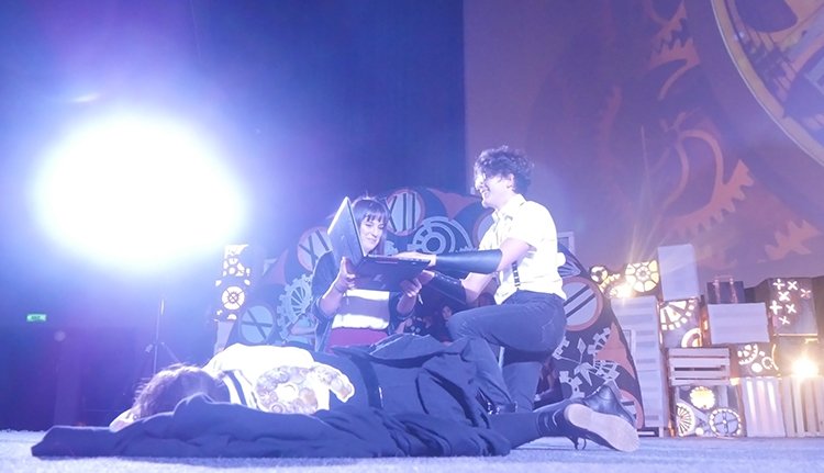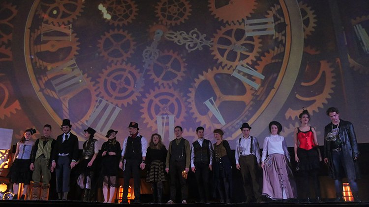 Hét óra tíz perckor sorakozót fújtak a színpadon, és esélyt kaptak a gólyák, hogy megmutassák magukat. Aki nem jártas a steampunk világában, tévesen akár azt is gondolhatná, ez a Csárdáskirálynő egyetemi színjátszócsoport előadása.
