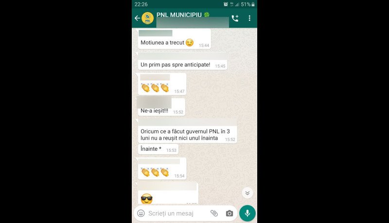 Nos, például onnan, hogy nyilvánosságra kerültek a párt Vâlcea megyei szervezete belső WhatsApp-csoportjának a szerdai kormánybuktatás utáni bejegyzései.
