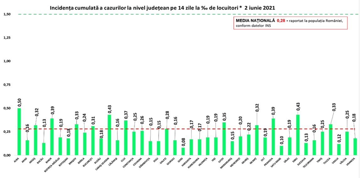 Fehér megyében pontosan 0,5 ezrelék, minden más megyében ennél alacsonyabb a lakosságarányos fertőzöttségi ráta. A legkisebb jelenleg Gorj megyében, 0,08, de például Szatmár megyében is csak 0,1 ezrelék.