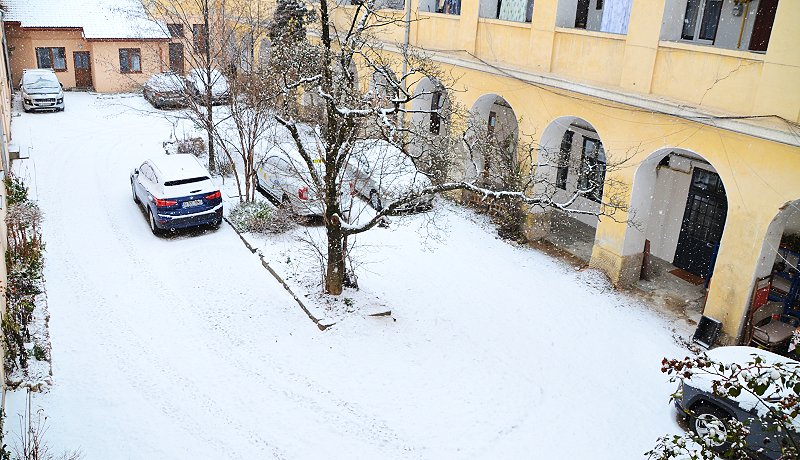 És ekkor jut eszébe, hogy nem húzta el a függönyöket. Megteszi, és a fenti kép tárul elébe. (A tényszerűség kedvéért: a fotó Kolozsvár központjában készült). És nagy öröm, nyugalom költözik az ügyeletes szerkesztő lelkébe. Mert amiért egész héten drukkolt, lám, bekövetkezett: kedves Olvasók, most már biztos, hogy fehér karácsonyunk lesz! (Legalábbis az eleje.) Az égi dolgokba a világnak ezen a táján (még) nem tudunk beleszólni. És a klímaváltozás is úgy gondolta, kicsit elmegy téli vakációra.