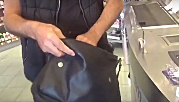 A biztonsági őröknek azonban feltűnt, hogy Enyves Kéz úr kissé sokat időzött a boltban és mégsem vásárolt semmit, és a kijáratnál alaposan kikutatták. A videón látszik, amint a lebukott tolvaj kipakol a kasszás pultjára.