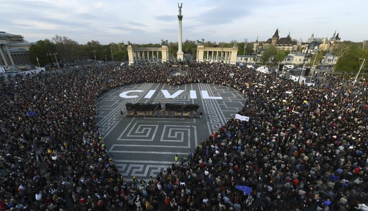 A Civilizáció Facebook-csoport által szervezett rendezvényen, mintegy száz civilszervezet demonstrált a fővárosi Hősök terén, akik egy nagyméretű szívet formáltak, közepén a civil felirattal.