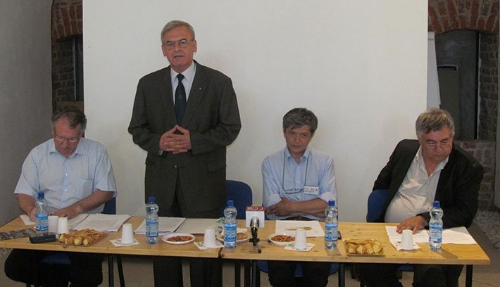 (fotó: Tőkés László sajtóirodája. Balról jobbra: Toró T. Tibor, Tőkés László, Florian Mihalcea, Dan Voinea)