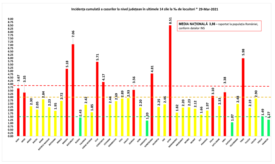 A lakosságarányos fertőzési ráta Bukarestben és 11 megyében lépi át a négy ezreléket. A legtöbb új beteget a fővárosban (1105), valamint Konstanca (288) és Kolozs (280) megyében regisztrálták.