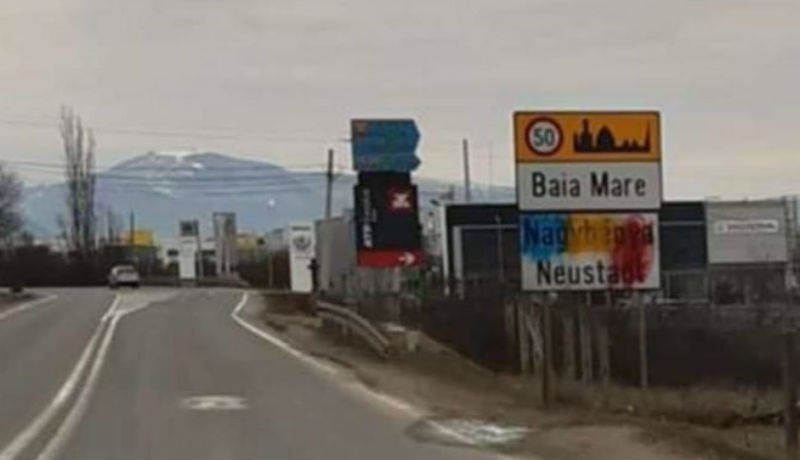 És nincs megállás: ezúttal Nagybánya sorakozott fel azon települések sorába, amelyek határában szorgos soviniszta kezek a román zászló színeire festették le a magyar feliratot.