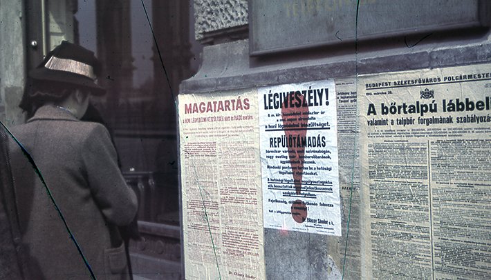 Felhívás légi veszélyre. 1944, Budapest. (Fotó: Fortepan, Ember Károly)