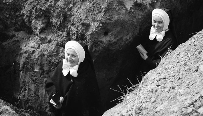 Légvédelmi óvóhely Győrszentivánon 1944-ben (Fotó: Fortepan, Konok Tamás)