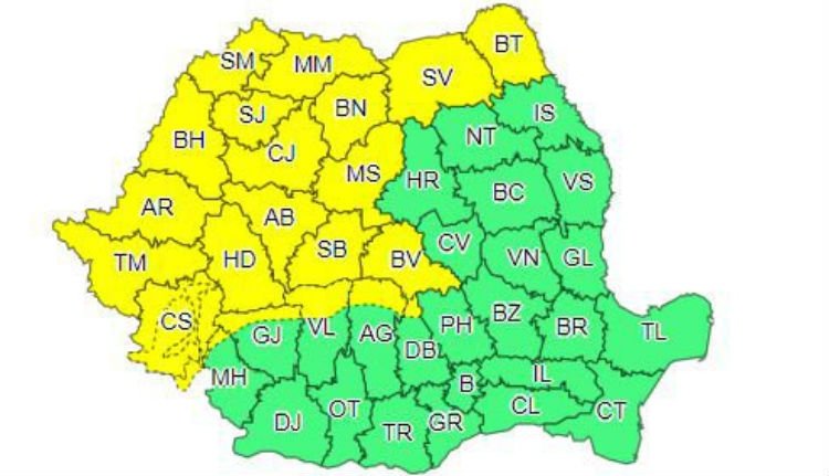Aztán este hattól a sárga figyelmeztetés Erdély egész területére kiterjed, míg Arad, Temes, Krassó-Szörény, Hunyad, fehér és Szeben megyében narancssárga, azaz másodfokú figyelmeztetés lép érvénybe, ami hétfőn reggel 6 óráig tart.