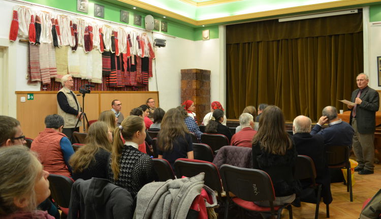Petres László hat éve él és tanít a csángók által lakott Lujzikalagoron. Beilleszekedésének nehézségeiről, tapasztalatairól, a helyi lakosság mindennapjairól, jövőképéről egyaránt beszélt, és részletesen kitért a Kolozsvárra hozott gyűjtemény darabjainak bemutatására is. A hallgatóság átfogó képet kaphatott a rendkívül zárkózott, mélyen vallásos, különös észjárású népcsoportról. Megítélése szerint a mintegy 180 ezer lélekszámú csángó közösségnek csupán az egynegyede ért és beszél magyarul, de ez változóban van, mivel egy nyelvváltás van folyamatban.