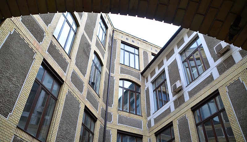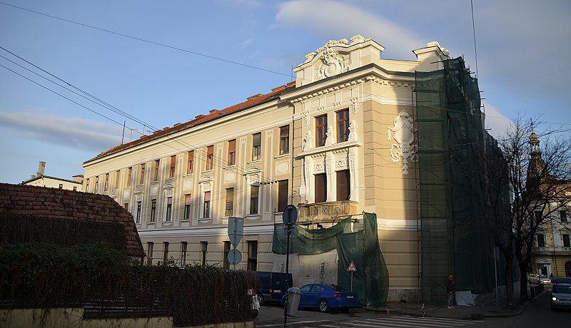 Ezt tettem én is: fogtam a kamerát és bejártam a források által hitelesített Reményik Károly-épületek helyszíneit. Mert biztos, hogy vannak más, általa tervezett, megépített épületek is Kolozsváron, (hogy Erdély más településeiről ne is beszéljek). A Farkas utcában (ma Mihail Kogălniceanu) kezdtem, mert ott lakom, talán a legismertebb (részben) Reményik-épülettel srégen szembe. A Kolozsvári Magyar Királyi Ferenc József Tudományegyetem (ma Babeș–Bolyai Tudományegyetem) épülete nem teljes egészében Reményik-poéma, csak a keleti meg a nyugati szárnya. Mondjuk, az sem semmi, ha belegondolunk. A Farkas utca újrafazonírozása okán a főbejáratot még tavaly év vége fele bezárták, ezért a gyalogos nyüzsgés a keleti szárny korábban zárt kapuján át zajlik. Bementem, megvívtam a szokásos szókaratét a kapussal, aki azonnal gyanús elemnek nézett, de mondtam neki, hogy hát ismerősök vagyunk, ott lakom, ni, szemben, gyakran összefutunk az utcán, köszönünk is, mire megnyugodott és engedélyezte, hogy pár fotót készítsek. És miközben árnyékként kísérgetett, lelkesen magyarázta, hogy ez az épület egy csoda. Egyetértettem vele. Az egyetem külsejét az unalomig fotózzák, ezért hadd álljon e fotósorban egy belső udvari fotó a keleti szárnyról. Ja, a külső falakat borító klinkertéglák az elmúlt bő száz év falfirkáinak gazdag tárházát képezik, az ezekről készített fotók itt böngészhetők. Jó lenne, ha valaki tudós ember is dokumentálná őket (mielőtt véletlenül átcsiszolják őket a nemlétbe), mert bájos kordokumentumok.