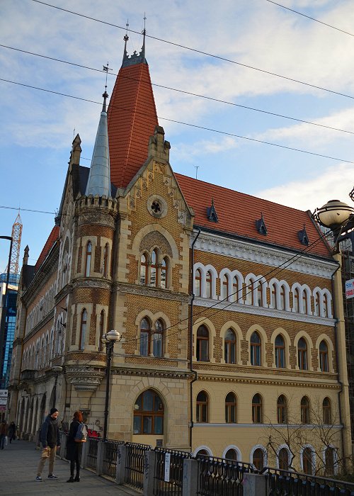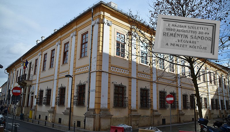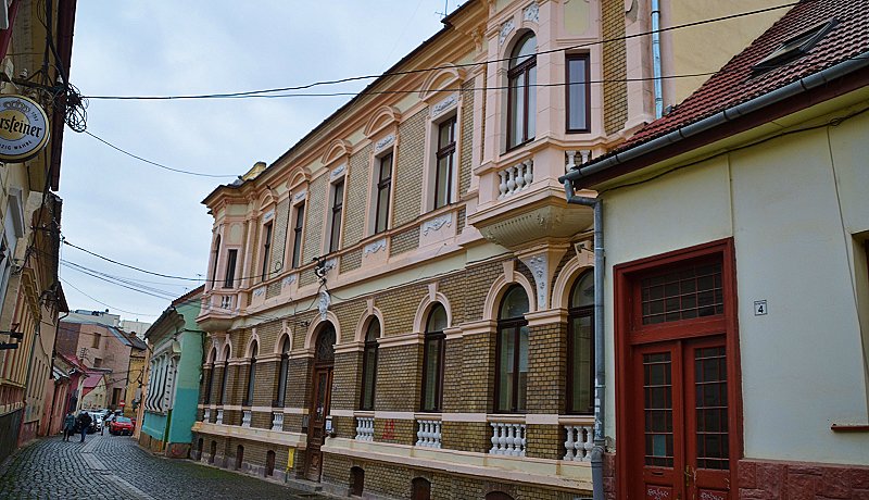 Egy fotó erejéig elugrottam még a Rudolf (Szent István, Bezerédi, Decebal) utcába, ahol az egyik leghumánusabb célt szolgáló Reményik-épület áll. Ez a korabeli Iparos Egylet aggmenháza: tehát, ha egy helybeli idős iparos rajta kívül álló okok miatt elszegényedett, beköltözhetett ebbe az épületbe, mert gondját viselték az alapítók. Szép, nem? Az épület ma nem szép. Sőt, határozottan ronda. Igaz, valamelyik minisztérium tulajdonában van.