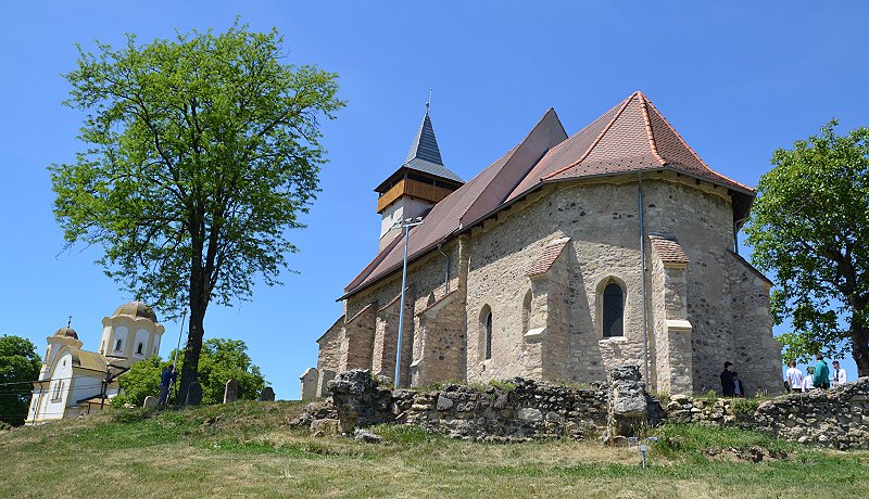 Megálltunk a templomdomb tövében. Az első dolog, ami szembe tűnt: a jobb oldalon ott az immár felújított református templom, a bal oldalon pedig az ortodox Isten háza. Ha bárki marslakó erre járna (és ismerné a megfelelő szavakat), elégedetten bólintana: