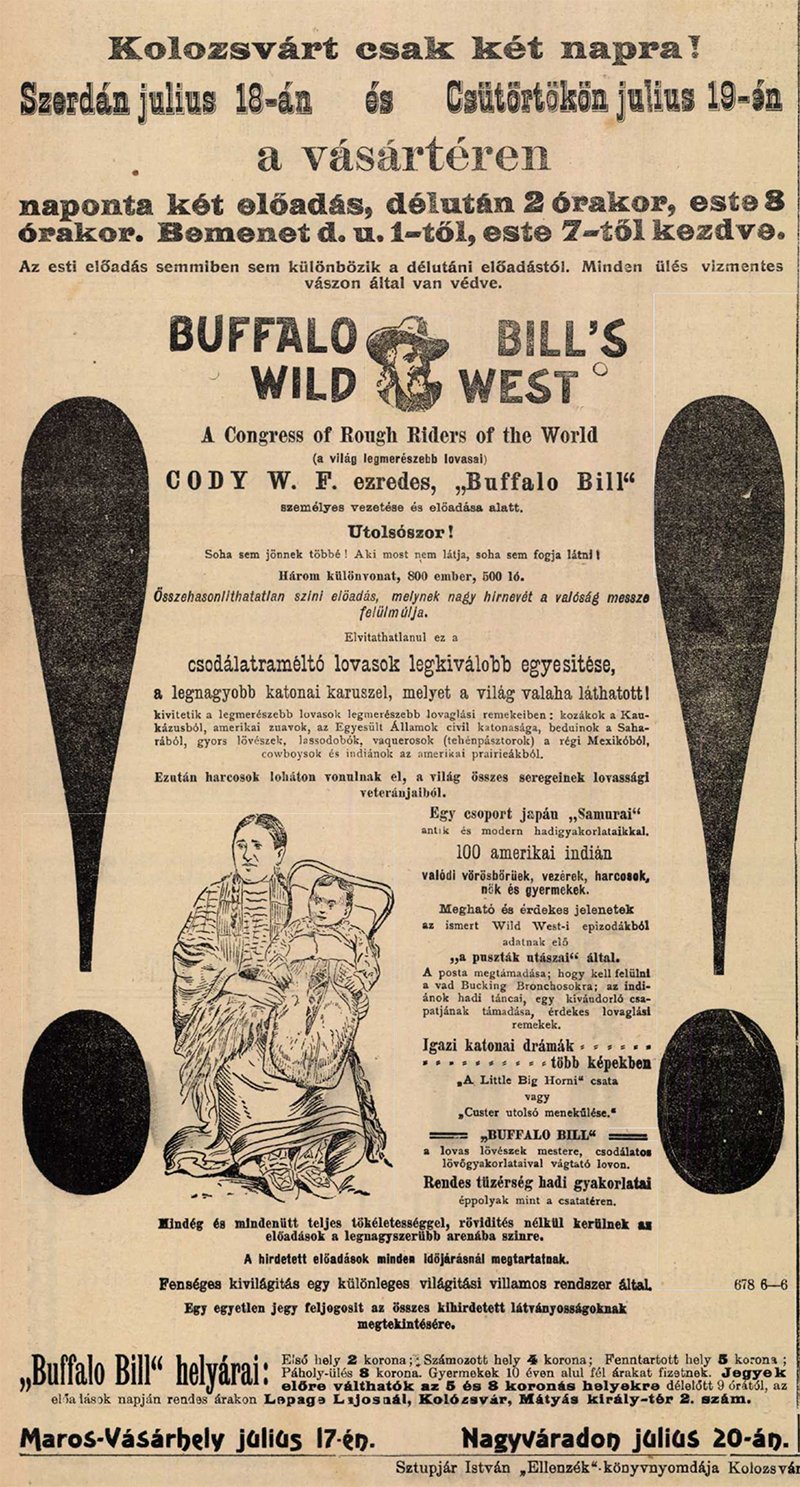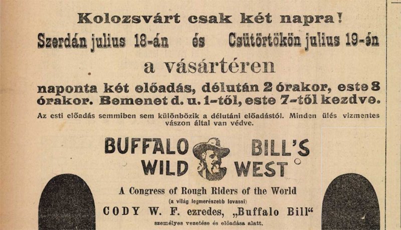 Na de van itt valami, ami szó szerint lázba hozta a kor magyar polgárát, hatóságait, médiáját. Ráadásul nem is európai akcióról van szó. Amerikáról akkoriban az emberek elsősorban a fiatal óriásország elszívó ereje kapcsán beszéltek. És sokan (nagyon sokan) neki is vágtak a modern Ígéret Földjének. Valószínűleg az amerikai álomkép is rátett egy lapáttal arra a lelkesedésre, amellyel Magyarországon (és ezen belül Erdélyben) Buffalo Bill Cody ezredest és az ő vadnyugati show-ját fogadták.