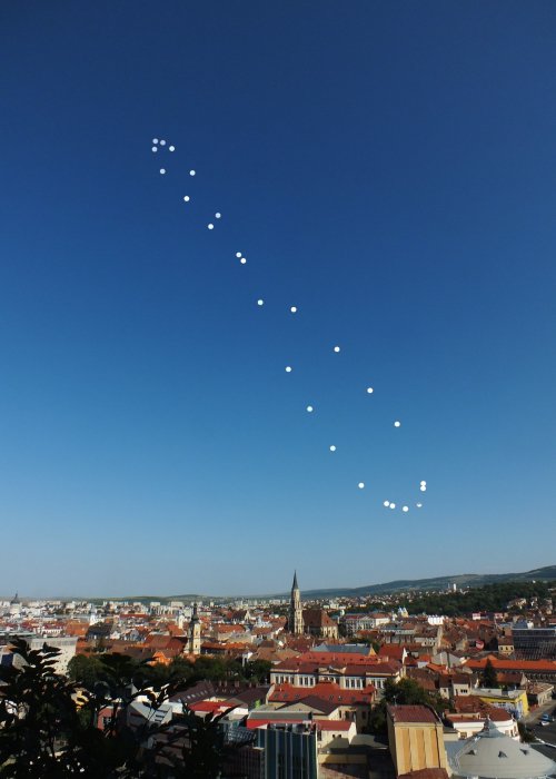 Analemma: a Nap égi útja, ha egy éven át ugyanonnan, ugyanabban az órában-percben fotózzuk. A kép egy éven át készült, amikor az időjárás megengedte, egy délután rögzített háttérrel és két tucat délelőtti Nap-fotó összegzéséből, az illesztéshez kellő sok matematikával. A látvány és terepmunka tervezésekor szempont volt, hogy a kincses város tornya az égen a nap-éj egyenlőségnél, tehát az égi egyenlítőnél metssze az analemmát.