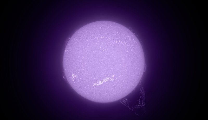 Napkitörés. A felvétel ún. keskeny sávú kép, a kalcium K vonalában, az emberi szemnek már nagyjából láthatatlan ibolya-ultraibolya fényben készült, az ún. hamis színes kódolás erre hívja fel a figyelmet.