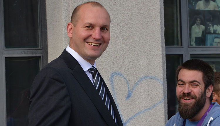 Balázs love Lepi. Gergely Balázs, a Kolozsvári Magyar Napok főszervezője – ő is köszöntő beszédet mond később – kicsit haverkodik még a bejáratnál, amikor megszólítjuk, hogy nézzen már ide, mert a hátát nem akarjuk lefotózni.