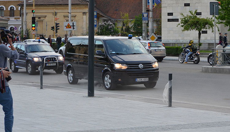 Hopp, közben a sarkon befordul egy politikusautó, reflexből lekattintjuk, de nem, ezzel még nem Orbán Viktor érkezik, hanem...