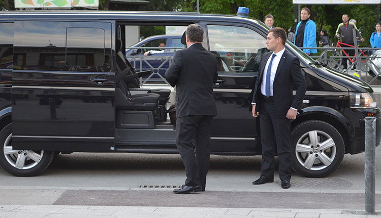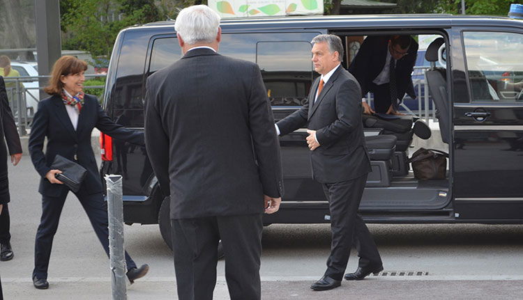 Na, ez már a miniszterenöki Volkswagen Transporter, érkezik Orbán Viktor.