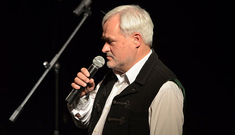 Szép Gyula pedig itt már sújtásos mellényben vezeti a műsort. Eredetileg Novák Péter lett volna a konferanszié, de valami miatt nem tudott eljönni, így maga a direktor veszi kézbe az est fonalát.
