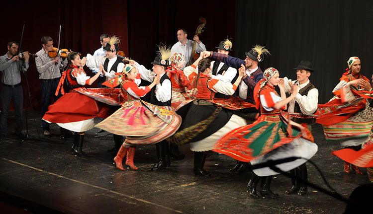 A köszöntők után jön a gála zenés-táncos része. Olyan tájegységek dalai, táncai következnek, amelyeken Kallós Zoltán gyűjtött. A koreográfiába Novák Ferenc (Tata) is besegített.