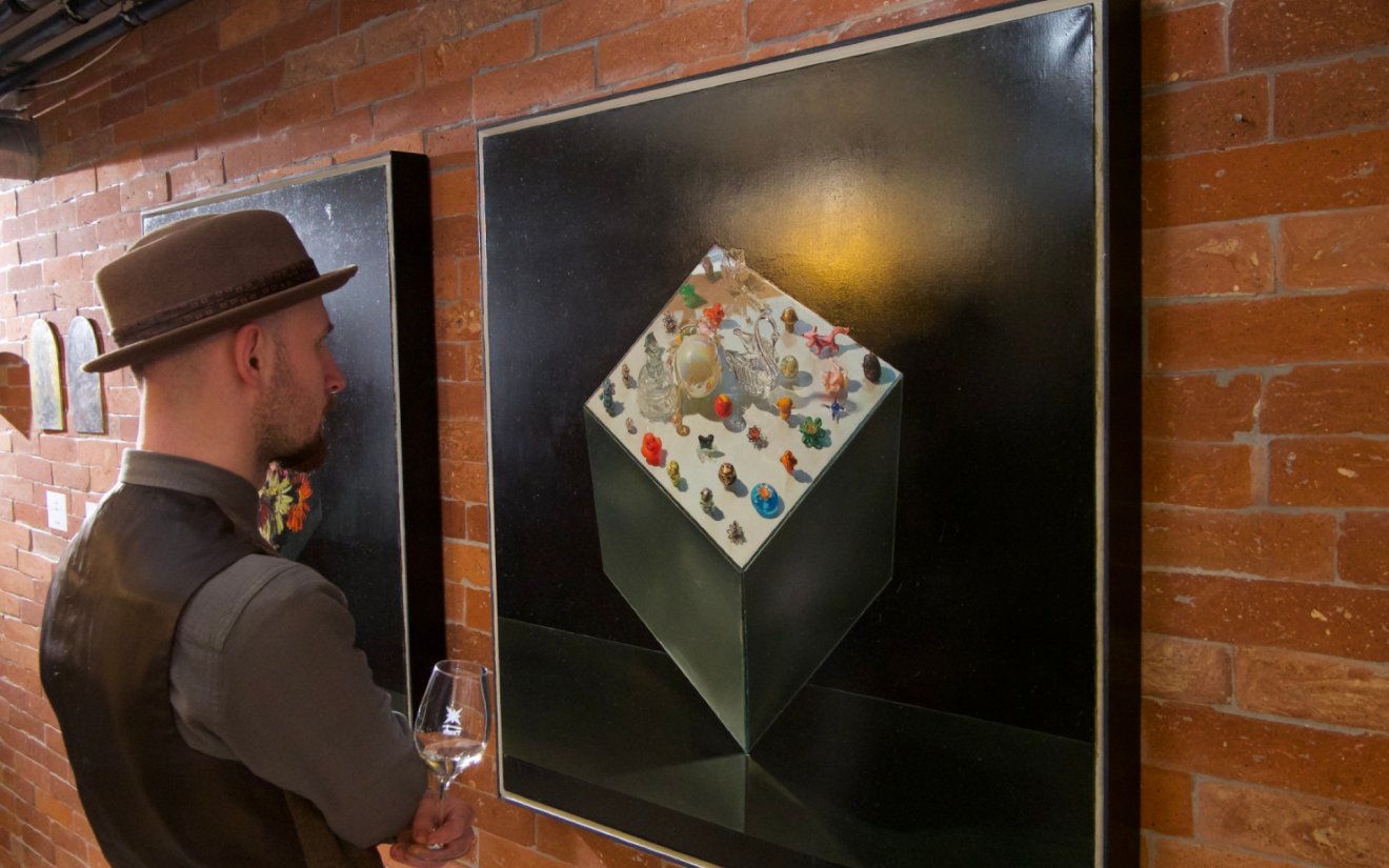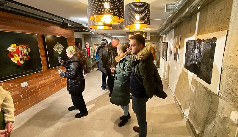 Ahol a művésszel találkozni, borozgatni lehet. Megnyitó a Kárpátia Borházban szervezett kiállításon.