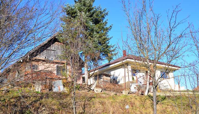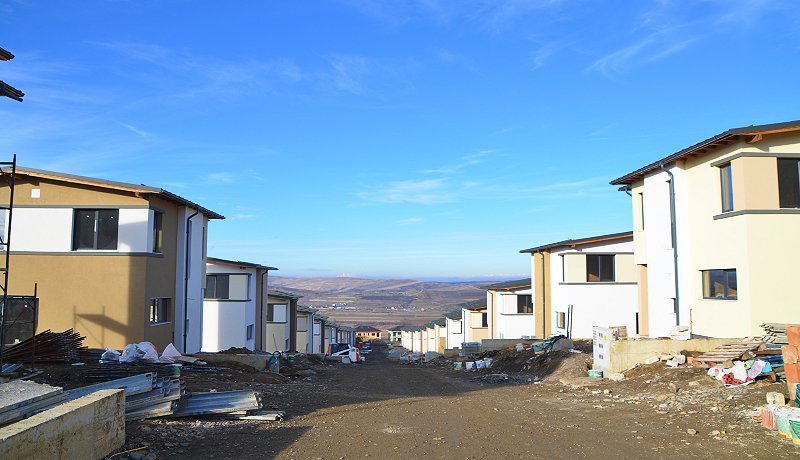 Látkép a dezméri főutcáról: a bal oldalon egy régebbi ház, mellette pedig a mediterránosch, lapított tetejű új.