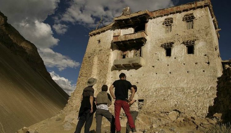 Magyar önkéntesek a zanglai palotánál, amelyben Csoma lakott (fotó forrása: Csoma's Room Foundation Facebook-oldala)