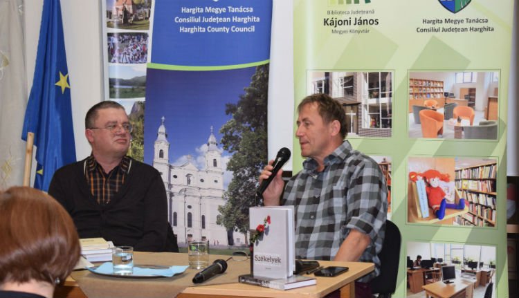 A Székelyek csíkszeredai bemutatóján, Lövétei Lázár Lászlóval | Fotó forrása: Kájoni János Megyei Könyvtár Facebook-oldala