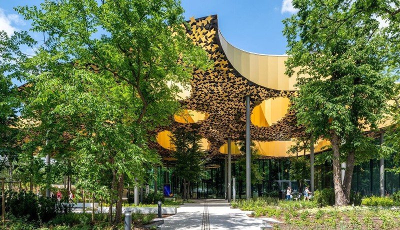 A Magyar Zene Háza úgy tud monumentális lenni, hogy alig látszik ki a fák közül – úgyhogy aki a korábbi reakciók alapján arra számít, hogy valamiféle zöldapokalipszis utáni állapotok fogadják a budapesti Városligetben, csalódnia kell. A japán sztárépítész, Sou Fujimoto tervezte poétikusan futurisztikus palota felülről nézve (már amit drónfotókon látni lehet) leginkább egy lyukacsos tetejű különös űrhajóra emlékeztet, mégsem tájidegen, diszkrét elhelyezkedése miatt pedig nem is rí ki a főváros építészeti környezetéből; és ez láthatóan tendencia, elég, ha a közeli, szintén új Néprajzi Múzeum közösségi térként is funkcionáló épületegyüttesére gondolunk.