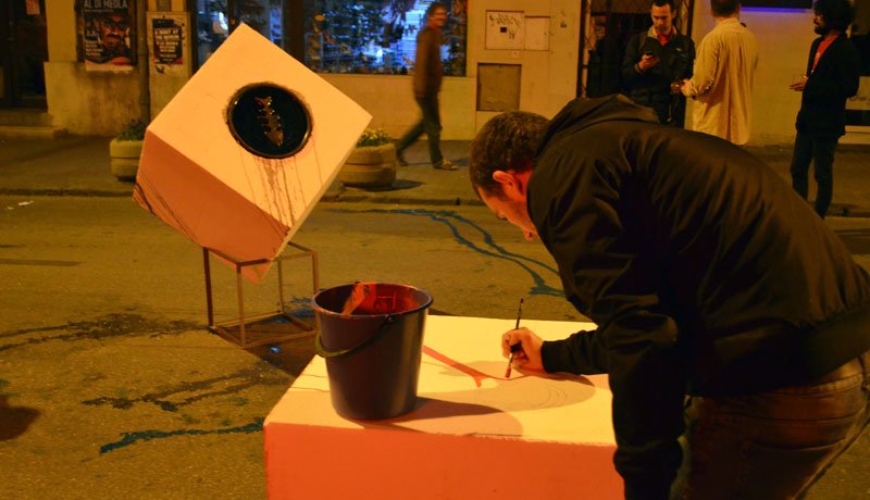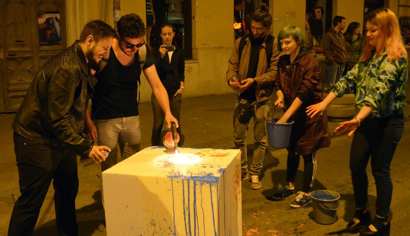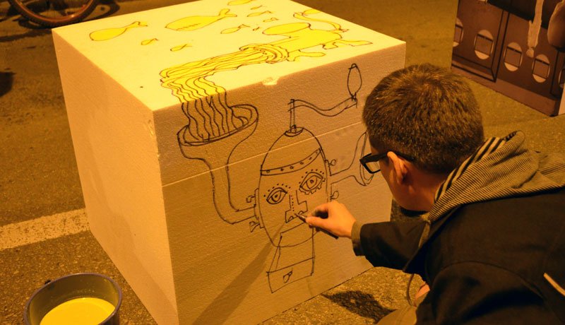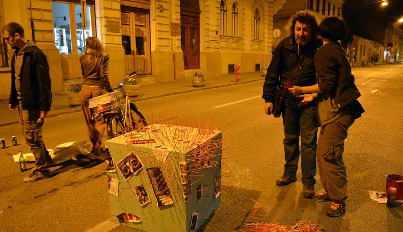 a Jókai / Napoca utcában: képzőművészek egy-egy fehér polisztirénkockát kaptak feldolgozásra, és rendesen nekiláttak festeni, vésni, vágni, olvasztani, ragasztani a „nyersanyagot˝. A beharangozó szerint a Vissza a jövőbe című utcai projekt végén a munkákat össze kellett volna, hogy állítsák egy közös alkotássá, de ez végül nem jött össze.