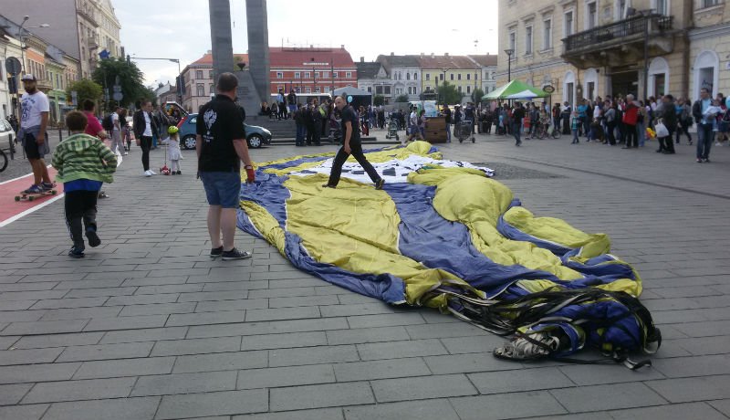 Elképesztő meló összeszerelni, majd némileg függőlegesbe állítani egy hőlégballont. A Deák Ferenc utca elején legalább két órán át dolgoztak ezen a fiúk, miközben többszáz bámészkodó várta, hogy fentről is lebámészkodhasson Kolozsvárra.