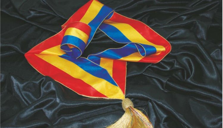 „A helyi választottak jogállásáról szóló (393/2004. sz.) törvény szerint, a nyilvános ceremónia keretében lezajlott eskütétel után a polgármesternek átnyújtják az igazolványt, melyet az ülésvezető elnök ír alá, a polgármesteri tisztség megkülönböztető jelét, melyet – a törvény rendelkezései szerint – mandátuma egész időtartama alatt joga van viselni, valamint a Románia nemzeti zászlójának megfelelő színű vállszalagot.