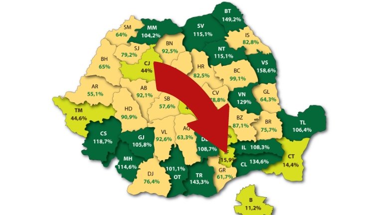 A Pénzügyminisztérium által a Gândul kérésére 2012-ben elküldött adatok szerint az állam az összes megyétől és Bukarest municípiumtól több mint 25,5 milliárd euró adót szedett be. Az állami költségvetés a jövedelemadóból és az áfából visszajáró összegek formájában nagyjából 6,5 milliárd eurót fizetett ki.