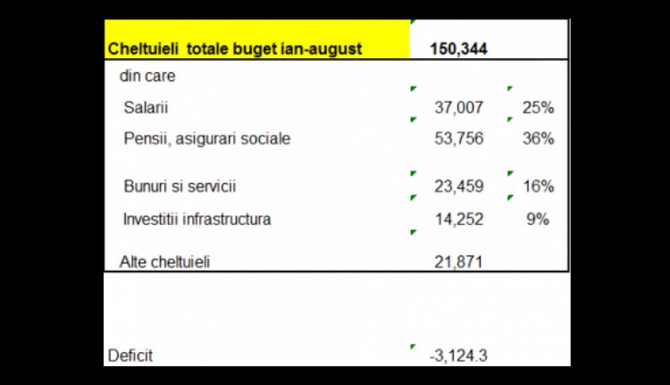 Forrás: Pénzügyminisztérium – a költségvetés végrehajtása augusztus 31-én, Radu Georgescu számításai (republica.ro)