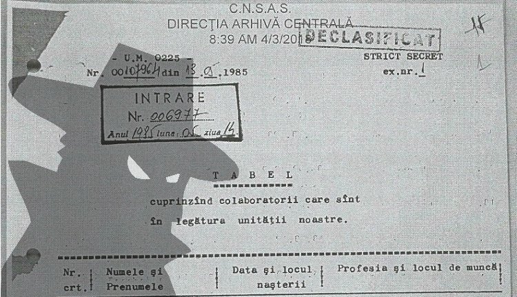 A CNSAS-ra, nem a listát összeállító és őket „együttműködők”-nek nevező szekusokra. Csak arra haragudtak meg, aki közzétette azt. Ezt nem értem. Ha teljesen ártatlan vagy, akkor mi bánt jobban, az a tény, hogy a Securitate készített egy listát, melyen egy lejárató címkét aggatott rád anélkül, hogy tudtál volna, vagy az, hogy egy kutató megtalálta és közzétette a listát?