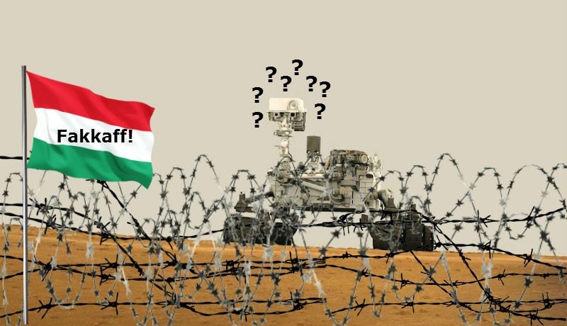 A magyarok minden határt túllépnek a kerítésmániájukkal! Az amerikaiak által a Vörös Bolygóra juttatott Curiosity marsjáró beleakadt egy magyar gyártmányú szögesdrót-kerítésbe, amely egyik napról a másikra jelent meg a bolygó felszínén. A kerítés állítólag a migránsok behatolását hivatott megakadályozni, de alapos a gyanú, hogy a magyarok azért húzták fel pont oda, hogy szívassák vele a világot, és problémát okozzanak ott, ahol épp nincs.